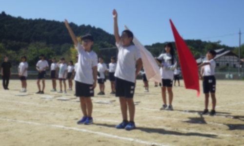 丸山タイムに、代表児童が集まり運動会の開会式の練習を行いました。
