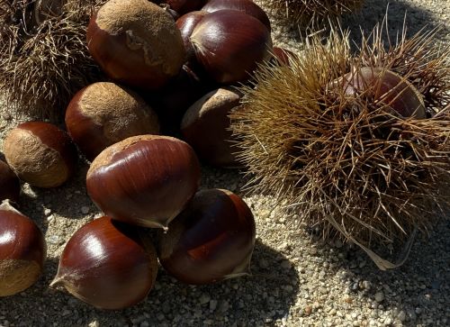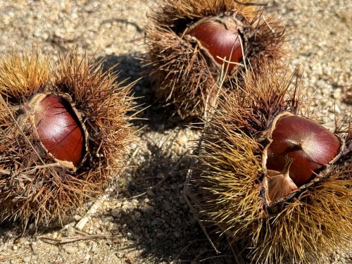 9月末頃から、運動場の地面に「いがぐり」が落ち始めました。立派に育ったくりが顔をのぞかせているものもあります。落ちた拍子に、いがから飛び出したくりもあり、それを見つけた子どもたちが拾ってうれしそうに職員室に届けてくれます。