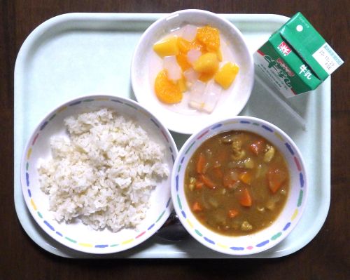 チキンカレー 牛乳 麦ごはん フルーツポンチ