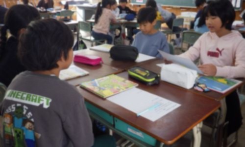 今回の話し合いでは、「1年生が本をすきになってくれるような、楽しい本を紹介すること」を目的にして紹介する本を1さつ決めていきます。司会や時間係などの役割を決めて、班ごとに話し合いを行いました。自分が選んだ本の紹介とその理由を伝え合ったり、質問したりして、それぞれの班で1さつを決めました。