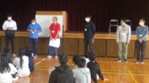 11月7日(金)の5校時に、「宇治田原むく福祉会」から職員と利用者の方、あわせて6名を講師としてお招きし、6年生が障がい児(者)理解教育の一環として福祉について学習しました。