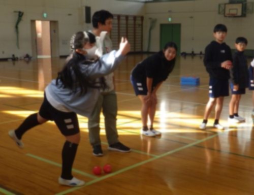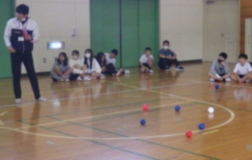 次に、「ボッチャ」についての説明がありました。「ボッチャ」はパラリンピックの正式種目であり、年齢・性別・障がいの有無に関係なく、誰もが一緒に楽しめるスポーツとして広く普及しています。ルールはシンプルながら奥深く、戦略的な要素も含まれていることが、人気の理由の一つです。この日は、ルールやプレイ方法を教えていただいた後、利用者の方と一緒にトーナメント戦を楽しみました。