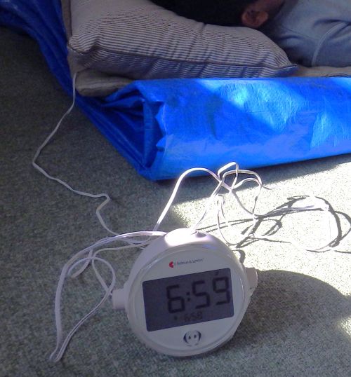 また、振動で起こしてくれる目覚まし時計の体験もありました。実際に寝転んで、枕から伝わる振動を感じることで、聴覚に障がいのある方の生活の工夫に触れることができました。