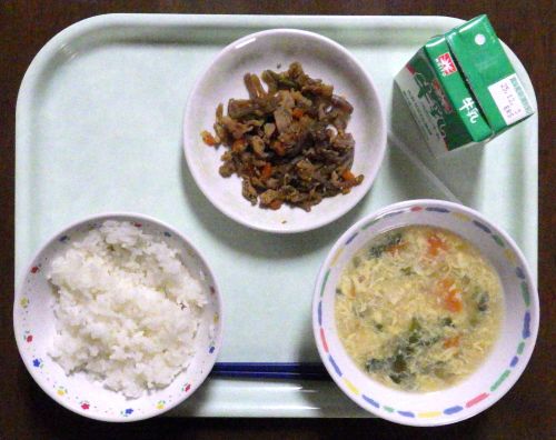 かき玉汁 牛乳 ご飯 五目きんぴら