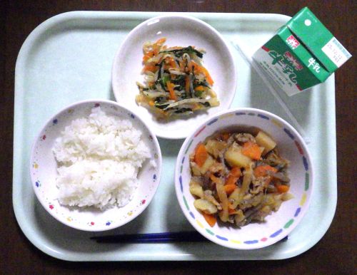 肉じゃが 牛乳 ごはん ほうれん草のごま和え
