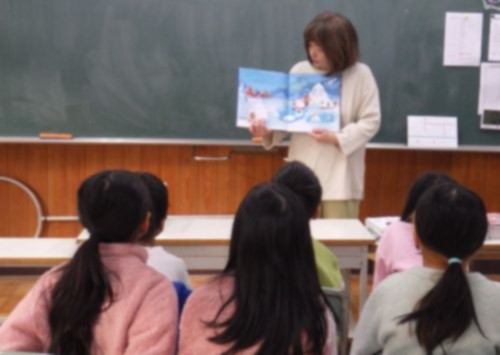 トピックス 12月11日(木)、朝読書の時間に「読み聞かせ隊」の皆さんが来校し、本の読み聞かせをしてくださいました。今回は、ことばに興味を持てる内容のお話や、クリスマスにまつわる楽しいお話がたくさんありました。