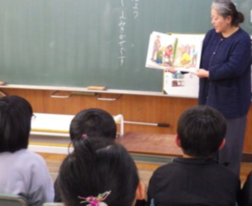 絵本の絵に目を輝かせる子、お話の展開にワクワクする子など、どの学年の児童も絵本の世界に引き込まれ、興味深そうに耳を傾けていました。