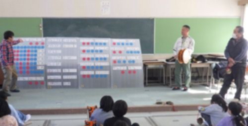 1月17日(土)の学校公開で、3年生はふるさと学習の一環として、奥山田区に伝わる「ねりこみ囃子」の学習を行いました。
