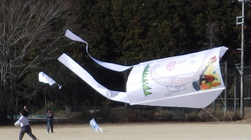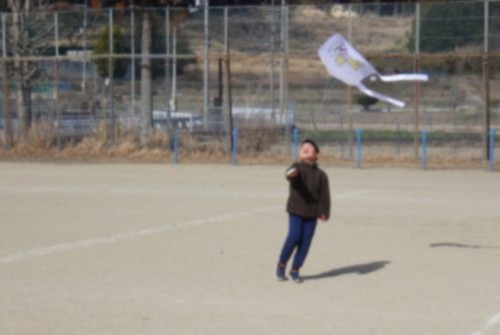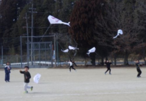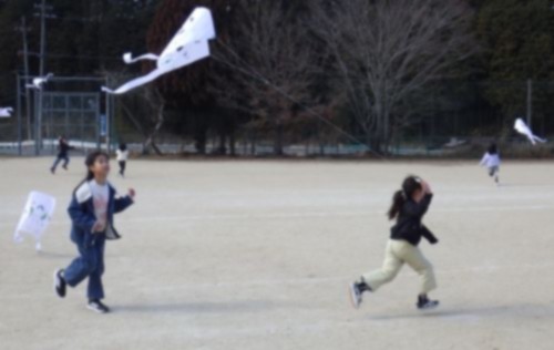 トピックス1月22日(木)の4時間目、1年生が生活科の学習に、たこあげをしました。このたこは、学校公開の日に教室で子どもたちが思い思いに絵を描き、完成させたお気に入りの作品です。当日は朝から気温が低く、風もそれほど強くはありませんでしたが、1年生は寒さにも負けず、元気いっぱいにたこあげを楽しんでいました。たこ糸をしっかりと持ち、うれしそうな表情で「見て、見て!」と声を上げながら運動場を走り回る姿が、とても印象的でした。