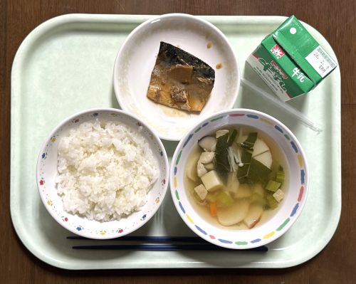 献立:鯖のみそ煮、ごはん、牛乳、すまし汁