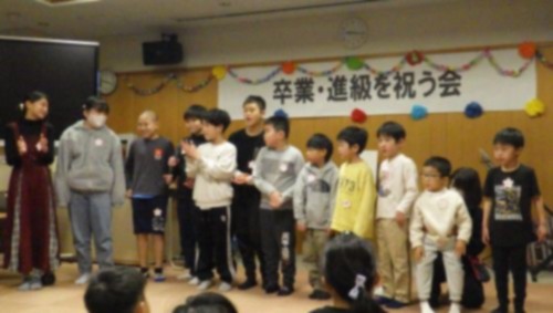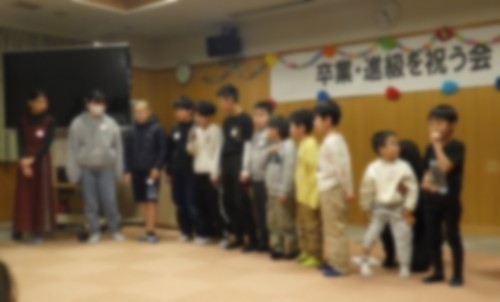 終わりの集いでは、一人ひとりが卒業・進級に向けた自分の決意を発表しました。学習や生活、進路など、これからの目標をしっかりと伝えることができました。発表の後には、民生児童委員のみなさんから卒業・進級の祝い品もいただきました。