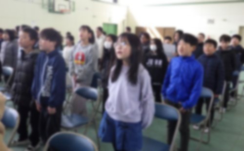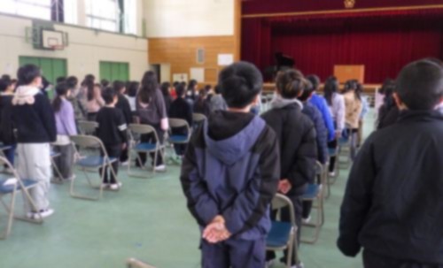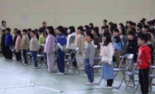 3月5日(木)2校時に、卒業証書授与式に向けて、在校生(1~5年生)の練習を行いました。担当の先生からは、「卒業生(6年生)に『おめでとう』『ありがとう』の気持ちを伝える大切な式である」という話があり、式の意義や臨む姿勢について確認しました。