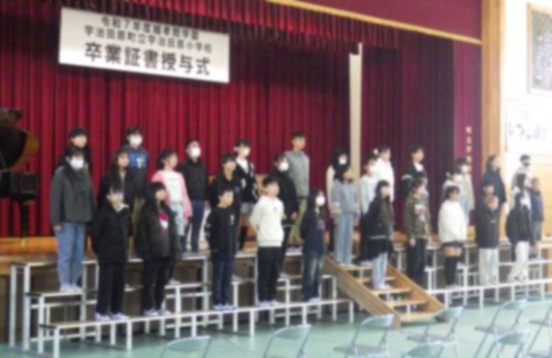 その後、卒業生の入場から始まり、式次第に沿って、開式の言葉、国歌・校歌斉唱、卒業証書授与、式辞、祝辞、卒業祝い品贈呈、卒業記念品贈呈、卒業生別れの言葉と進みました。
