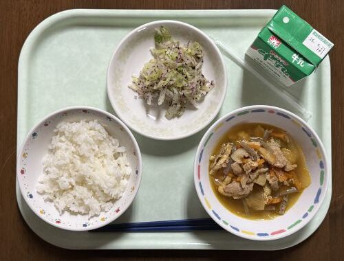 今日の給食今日から令和8年度の給食がスタートしました。今日の献立は、「豚丼」です。「豚丼」は、ごはんの上に甘辛く味付けした豚肉をのせて食べる料理です。豚肉には、体をつくるたんぱく質や、疲れをとる働きのあるビタミンB1が多く含 まれています。ビタミンB1は、ごはんなどのエネルギーを体の中で、上手く使うためにも大切な栄養です。学校給食のスタートに際し、子どもたちにしっかり食べて元気に過ごしてほしいという栄養士さんや調理員さんたちの願いのこもった献立です。