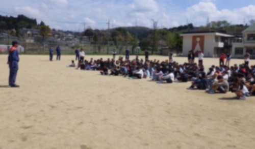 各学級では事前に、「おはしもすき」(おさない、はしらない、しゃべらない、もどらない、すばやく、きく)の約束を確認しました。訓練では、その約束を意識しながら、落ち着いて運動場へ安全に避難することができました。