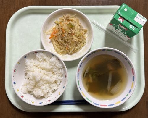 献立:チャプチェ、牛乳、ごはん、わかめスープ
