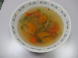 お月見団子汁(10/6) 給食室から Twitter Facebook はてブ Pocket LINE コピー 2025.10.06 今年の中秋の名月は本日の夜に見られる月のことだそうです。 給食にはお月見団子汁・・・。 かぼちゃ団子が黄色く浮かんでいます。 ちなみに満月が見られるのは明日(7日)だそうです。