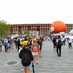 これまでに降った雨のために校門近くの地面がぬかるんでしまっています。