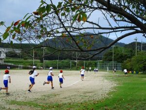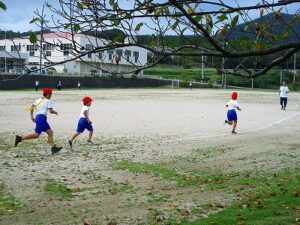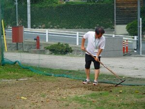 子ども達が走っている横で教頭先生が土を起こしてくれていました。