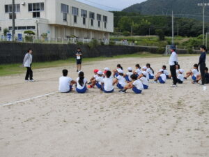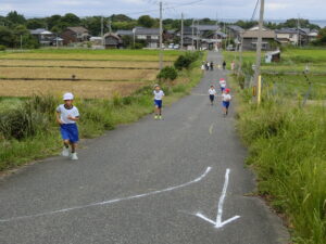 宇川小学校の鉢巻きを付けて走る最後の大会になります。