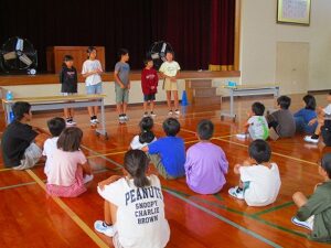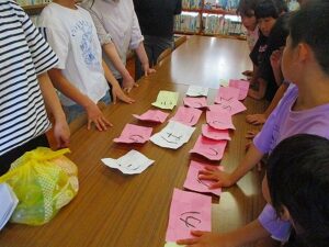 赤チームは図書室で、白チームは音楽室で、それぞれ本部が隠した文字入りカプセルを探します。上手に隠したカプセルはなかなか見つからず各教室ともに大騒ぎです。