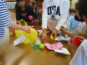 遠足の日、往路の途中でする予定だったチームごとの宝探しを10月9日の中間休みに行いました。