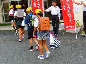 にこちゃんはっぴーでー(PTA) PTAのページ Twitter Facebook はてブ Pocket LINE コピー 2025.10.14 10月14日(火)は丹後中学校区一斉挨拶運動「にこちゃんはっぴーでー」でした。 PTA家庭教育委員会メンバーと中学生が校門と児童玄関で登校を見守り挨拶を交わしました。