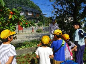 今日(10/17)はその柿を用務員さんにもお世話になり、1,2年生とわかあゆ学級とで全部収穫しました。その数なんと約160個