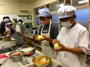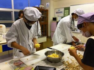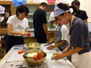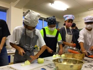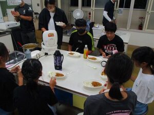 夕食のカレーは大人のサポートも受けながら子ども達が頑張って作りました。