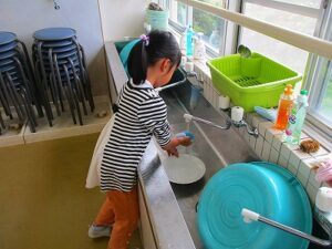 先生たちも用務員さんも総出でとにかくひたすら皮むきです。