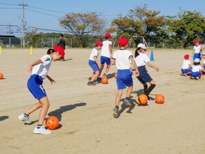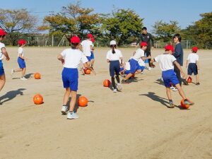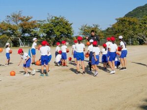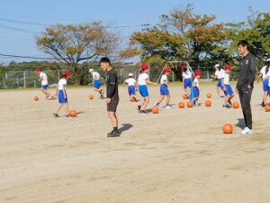 10月30日(木)の5時間目は京都パープルサンガから2人のコーチに来ていただき、全校一緒に体育をしました。