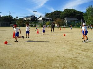 コーチの出す条件を聞きながら動き方を考え活動します。