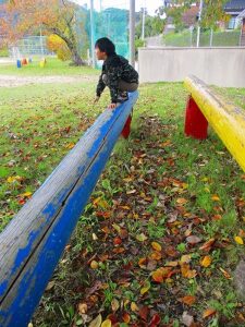 桜の葉が紅葉する穏やかな日差しの下、子ども達の声が響くグラウンドの風景にほっこり・・・