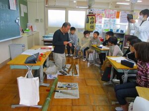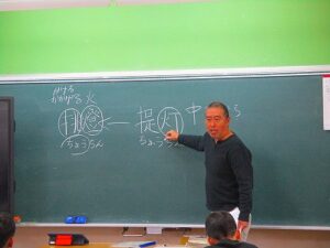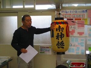 11月28日(金)の2時間目は地域で提灯づくりをされている方からお話をきかせていただきました。