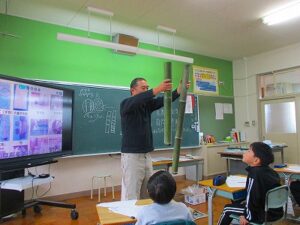 子ども達は「こわっ!」「うすっ!」「手、切らんだ?」など、口々につぶやき、ドキドキしながらその様子に見入っていました。