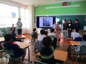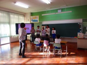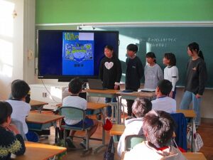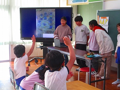 朝読書の時間を使って各学級を順に回りクイズを出します。1回目は1,2年生でした。