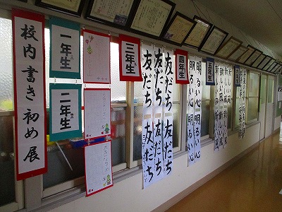校内書初め展(~1/27) 学校の様子 Twitter Facebook はてブ Pocket LINE コピー 2026.01.20 書初め大会で清書した中から1枚を選んで職員室前の廊下に展示しています。 来校の機会がありましたら是非ご鑑賞ください。 なお、展示期間は1月27日の授業参観日までです。