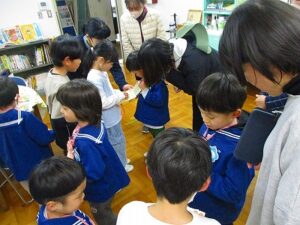 保育所の子ども達が教室に入ってくると上級生の背中がちょっとばかり伸びます。