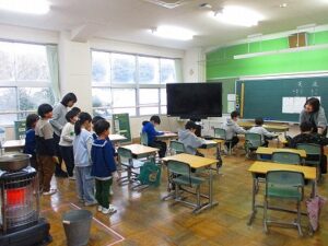 1月26日(月)の午前中、宇川保育所の子ども達が宇川小学校にやってきました。