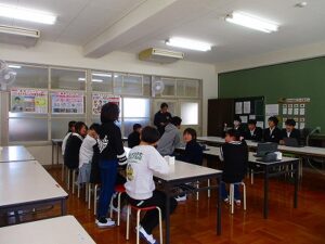 1年前には宇川小学校の校舎で一緒に遊んでいた「友達」が「先輩」として目の前に座り、助言してくれる姿に「中学校生活」を想像するとともに、「成長する」ということの意味も感じた5,6年生でした。