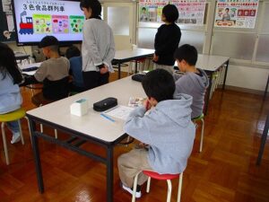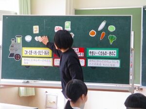 1から4年生は栄養列車を使って、食材に含まれる栄養素について学びました。