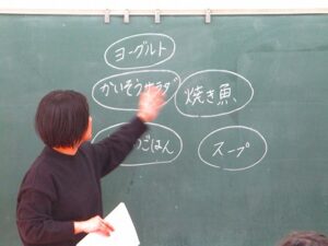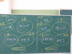 5,6年生は栄養バランスを考えながら理想的な献立を考えました。