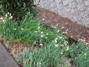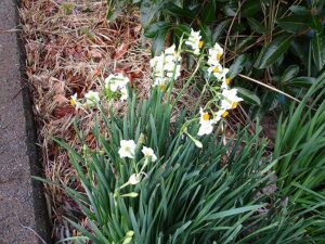 積雪に埋もれていたグラウンドわきの水仙や椿も、またきれいな花を見せてくれています