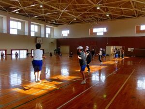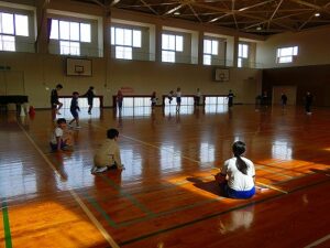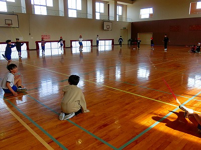 赤白チームに分かれて円になり、各自が披露したい技を交互に発表します。30秒ごとに3回交代なので一人最大3種目の技が発表できます。(繰り返し同じ技に挑戦してもかまいません)