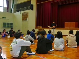 いつも様々な学習をサポートしてくださる戸根さんも、作詞者である戸根道生校長先生のご子息、ということで、この日、子どもたちの歌声を聞きにきてくださいました。