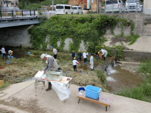 9月24日(水)は地域の方々にお世話になり、3,4年生が吉野川の生き物調査を体験しました。