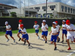 全員で軽くアップジョグをした後、まずは低学年、その後高学年がスタートしました。