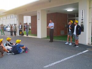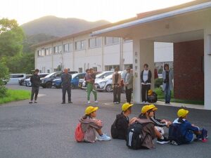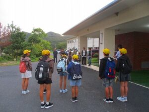 出発式をし、送ってきていただいた保護者の方々と「行ってきます」「いってらっしゃい」と元気に挨拶を交わし、バスに乗り込んでいきました。