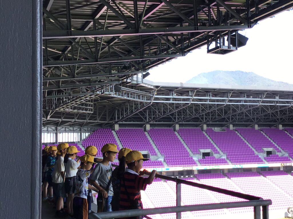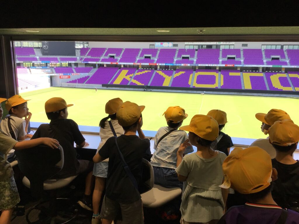 スタジアムの中を見学し、ロッカールームやピッチの近くなど、ふだんは入れない場所にも入ることができました。広いグラウンドを見た子どもたちは、「わあ、プロの選手ってここで試合してるんだ!」と目を輝かせていました。