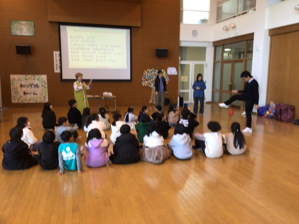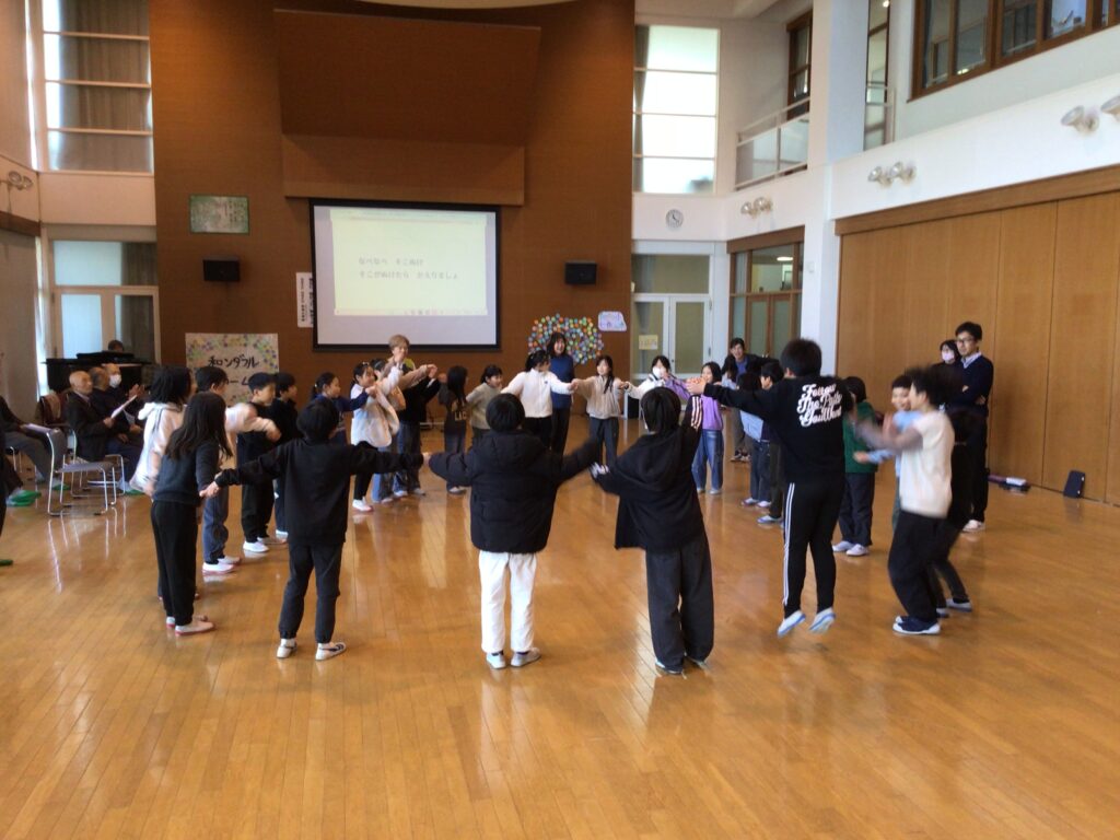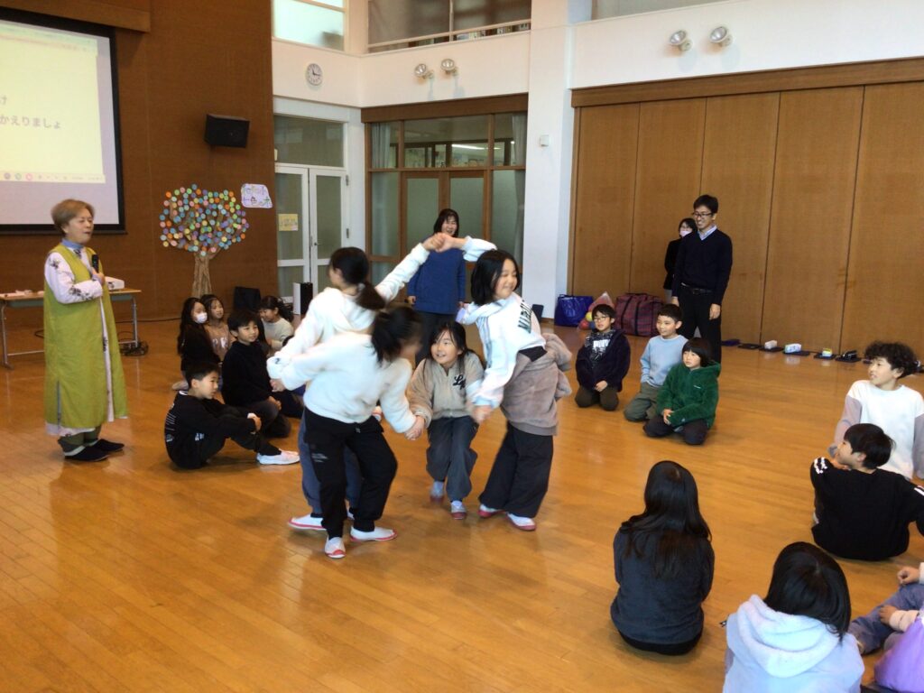 本日、3・4年生を対象にわらべ歌教室を開きました。昔懐かしいわらべ歌。みなさんはわらべ歌といえば、どのような歌を思い浮かべますか?「姉さん六角たこ錦〜」から始まり、たくさんの歌を教えていただきました。子どもたちも、最初は歌を聴き入っていましたが、次第に口ずさみ、授業の終わりにはとても楽しく歌いながら活動することができました。講師の先生方が帰られる際には、子どもたちから「楽しかった!」「また、歌いたい。」という声が聞こえてきました。このようなわらべ歌を学ぶ機会はとても貴重な学びになりました。